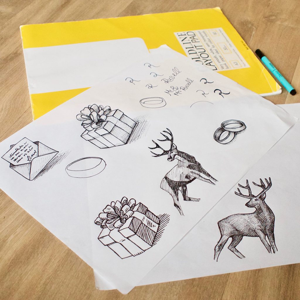If you fancy giving the drawing pencils a miss – you can use the English Stamp Co’s excellent online tool, which enables you to create bespoke typographic stamps in a few simple clicks. You can choose text line by line, using a great selection of fonts. You could use your names and date of the wedding for a really personal touch. This is also fabulous for save the dates, or the wedding invitations themselves.